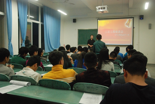 2015年3月23日晚,为进一步提高电气工程系学生对“三百工程”活动的认识,了解活动的深刻涵义,电气工程系以班为单位,组织全系学生在教学楼各小班教室召开“三百工程”座谈会。