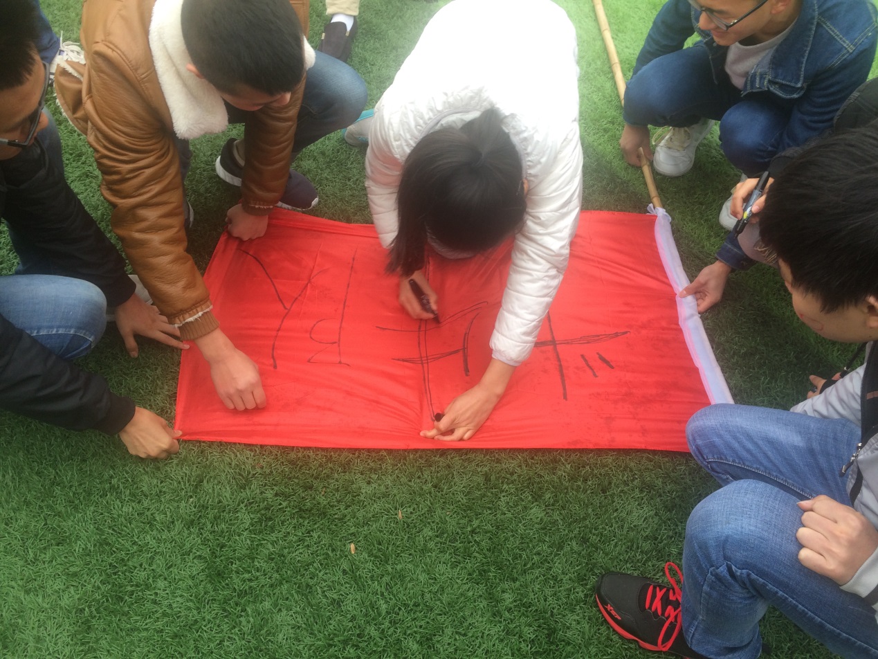 最后在紧张刺激的气氛中我们结束了这次心理素质拓展活动,这次活动让我们乐在其中,也学到了许多在书本上学不到的知识,更明白了团队合作在实现既定目标上具有的优势,所以我们要学会与他人合作,学会做一只合群的大雁,这样才使得我们的团队飞得更高!更快!更远!