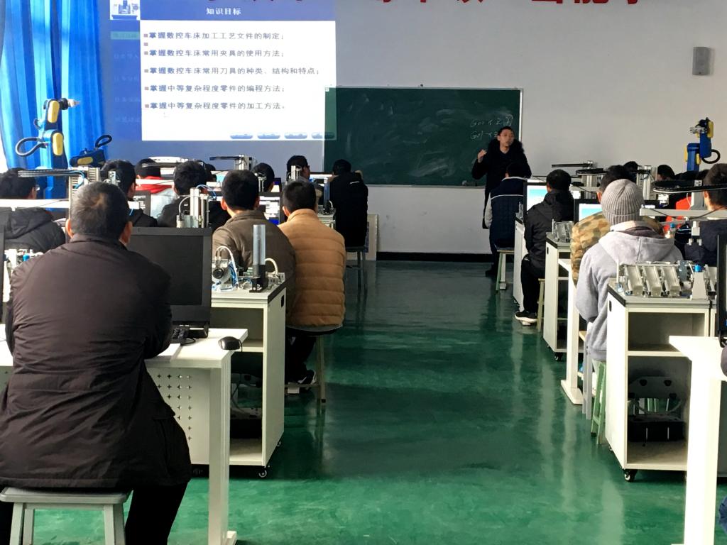 刘海军老师的授课内容为:“球形三角螺纹轴编程及仿真”。在教学过程中,讲授与仿真练习相结合,同学们学习兴趣浓厚,教学效果得到专家和同行们的一致好评。